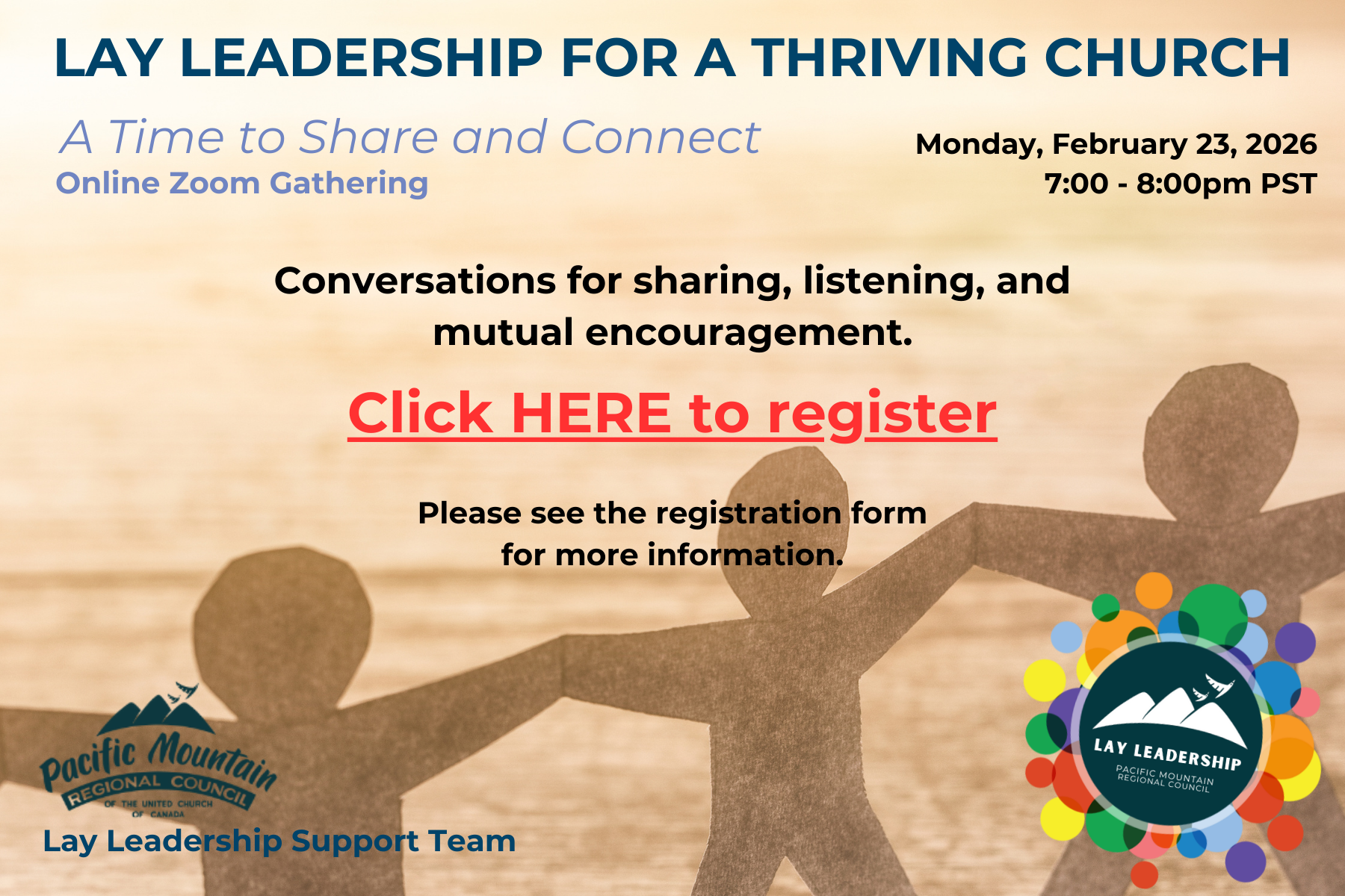 This gathering will bring lay leaders together to share experiences, learn from one another and reflect on specific topics that were identified by you at our last gathering. It is a chance to step beyond our individual congregations, hear different perspectives, and remember that we are not serving alone.