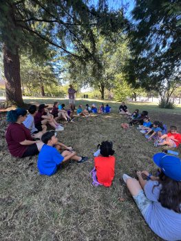 This past August, Rev. John Snow Jr. joined the Camp Spirit team at their Burnaby camp for a day of learning and spirituality. In these photos, he was teaching the campers about the Beautiful Forest by Tatanga Mani, Walking Buffalo. “The forest is beautiful because it grows according to the plan of the Creator”.